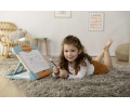 Es ingenioso, con una gran superficie para escribir (21,7 x 33,7 cm), un espacio para guardar accesorios y otro para colorear.