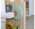 Muro de actividades de doble cara con 6 actividades y 29 accesorios.