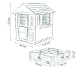 La casa de juegos de Smoby Life con arenero tiene una puerta baja de plástico soplado y 2 ventanas con contraventanas correderas.