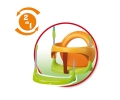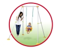 Un gran columpio infantil de 180 cm. de alto. Estructura de tubo de acero de fácil ensamblado y alta resistencia. Asiento evolutivo de plástico rígido y seguro, anillo de seguridad separable. Protectores en la terminación de todos los tubos. Todo el plástico utilizado ha sido sometido a nuestro tratamiento anti-UV que protege el color y la resistencia del plástico aumentado su duración.