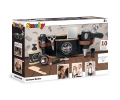Incluye 10 accesorios: un par de tijeras, un recortador mecánico (longitud de corte: 1, 2, 3), un bote de loción, una maquinilla de afeitar, un espejo, un secador de pelo con luz y sonido, un jabón de manos espumoso, un peine,y una brocha de afeitar.