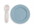 Incluye: una cuchara, un plato y un espacio de almacenamiento.