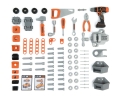 92 accesorios en total: herramientas, taladro, regla, tornillos, tuercas, clavos…