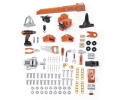 94 accesorios en total: herramientas, taladro, regla, tornillos, tuercas, clavos…