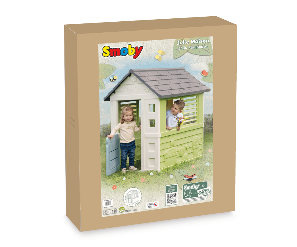 La casita Smoby Life Jolie tiene una puerta baja de plástico soplado y 2 ventanas.