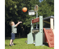 - Zona polideportiva equipada con: un tobogán de 1,50 m, una canasta de baloncesto, una portería de fútbol y una pared reversible (escalera o escalada).
