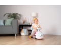 Correpasillos Maestro 3 en 1 que evoluciona con el niño a partir de los 6 meses. Equipado con barra parental metálica ajustable, arnés de seguridad para el niño, anillo de seguridad, reposapiés, cajón para guardar juguetes bajo el asieento, bocina electrónica, ruedas silenciosas, ojos divertidos con diferentes posiciones. Fabricado en Francia.